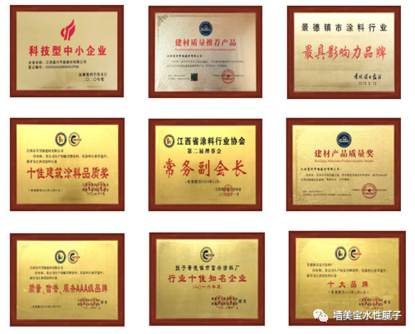 墻美寶通過自我創(chuàng)新與突破,榮獲江西省涂料行業(yè)十大品牌、全國節(jié)能建材質(zhì)量獎(jiǎng)、十佳建筑涂料品質(zhì)獎(jiǎng)等20余項(xiàng)殊榮。